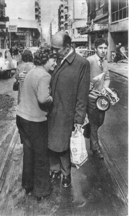 F. M.:Un fracaso: dormí todo el día. Me fuí a mi vieja oficina de la Galería Güemes, donde nació “Correo de la Tarde”, y empecé a acomodar papeles y a sacudir un poco la tierra; ví el sillón, y me tiré para descansar un rato. Bueno, dormí siete horas corridas... Lo que pasa es que mientras uno está en actividad no se da cuenta, pero en cuanto se relaja, se desploma. Y como yo no soy un tipo pasivo, necesito moverme rápidamente. Otra cosa que debe influir es que estoy tomando menos café. Tomaba alrededor de cuarenta, y cuarenta cafés son cuarenta terrones de azúcar, y así compensaba lo poco que como. Creo que le voy a hacer caso a un amigo que me recomendó que lleve terrones de azúcar en el bolsillo. ¿Me acompaña hasta la otra cuadra? Le voy a comprar un regalo a mi hija… |
